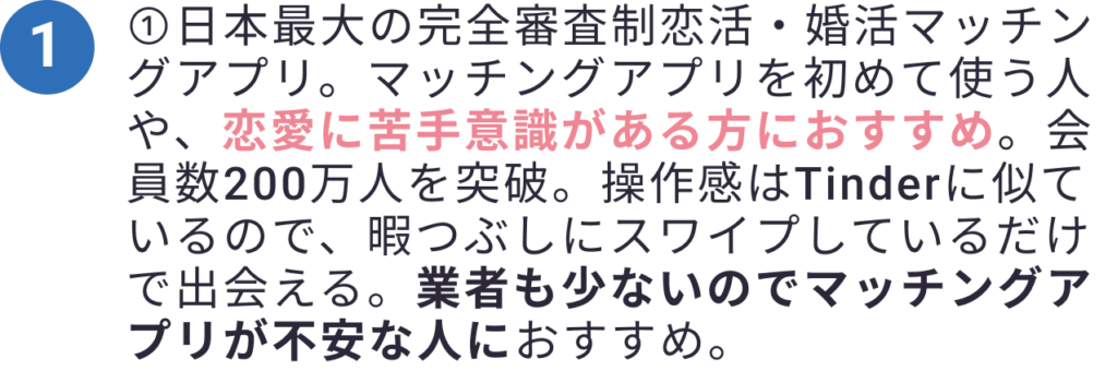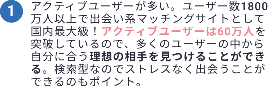 まずは恋活からという人向け。いきなり婚活はハードルが高いという人にはオススメ。