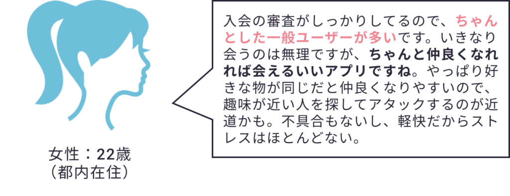 ・女性🙋‍♀️ 運営の(男性の)審査がかなり厳しいから安心感。